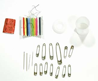 I call this my "signaling kit" and store all the items in a canvas pouch for additional strength, since some of these items, especially the batteries, are heavy.